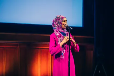 Talent Night winnaar Houda (El Khan) Noussi sprak via de kunst van spoken word over haar dochter: een lieve, vrolijke en gelukkige jonge meid. Echter ziet de buitenwereld haar niet als een gewoon meisje, want ze heeft het Syndroom van Down. Houda laat met haar prachtige waterval aan woorden zien dat het leven simpelweg gaat over de manier waarop je kijkt naar dingen: “Down syndroom? No, we call it UP syndrome. Because there is nothing down about her.” Het draait allemaal om perspectief, en jij bent zelf in controle over je denkwijze. Inclusiviteit draait niet om gender, kleur, geaardheid, of om een ‘beperking’ – het gaat om mensen. Dit is nog eens een concrete les om gelijk mee te nemen naar je volgende meeting.