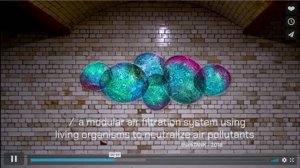Wereldwijd sterven ieder jaar 4,2 miljoen mensen aan luchtvervuiling. thinkTHANK, een groep van vier Britste bouwkundig design studenten, ontwikkelde celmodules met een luchtzuiverend bacteriesysteem die de lucht in openbare ruimtes zuiveren. De celmodules, die een alternatief vormen voor traditionele filtersystemen die vaak op de stort belanden, zijn haast futuristisch ogende kunstobjecten. Een duurzame oplossing voor een serieus probleem in een lekker jasje. Instagram: cellulair