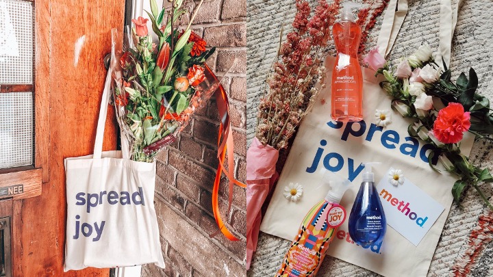 In deze tijden kan iedereen wel een beetje extra ‘joy’ en vrolijkheid gebruiken. method, bekend van de plantaardige en biologisch afbreekbare schoonmaakmiddelen, hemelse geuren, en regenboogkleuren moedigt Nederland aan om iets te betekenen voor een ander. Vul een tote bag met fijne spullen die je in huis hebt (het tijdschrift dat je verslond, je lievelings crackers, een übersappige peer of een felbegeerde wc-rol ;-)) en drop het aan de deur bij iemand die het verdient! Zo makkelijk en leuk kan het zijn om iemand blij te maken. #spreadjoy.PS het leuke is: method geeft een van hun knappe flessen daarvoor gratis aan jou. Om weg te geven. Lees hier hoe dat werkt!